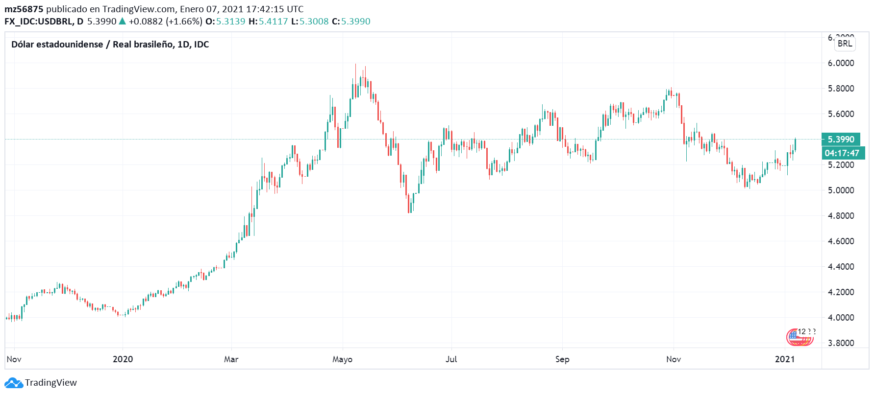 Figure 4. Historical USDBRL spot rate