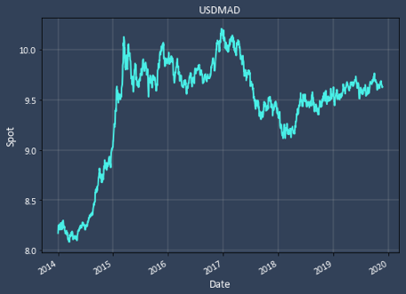 The few floating currencies in the region are EGP, ILS and MAD (Moroccan Dinar). The MAD volatility is only 1.4%/mo and the ILS similar at 1.5%/mo.