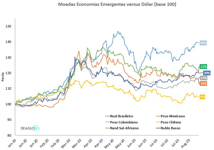 Os dados sazonais mostram que as principais moedas dos mercados emergentes caíram em relação ao dólar nos últimos 8 meses. No entanto, algumas moedas recuperaram algumas das suas perdas, à medida que os investidores procuram dar um novo impulso ao carry trade e reinvestir nas economias emergentes, apesar do medo contínuo em torno da crise global provocada pela Covid-19.
