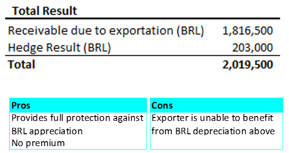 Thus, the exporter receives BRL 7,000 more than they would without an FX hedging strategy in place.