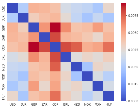 Below is the heat map for the first week in December, showing the relative volatility between currencies. The redder the color, the higher the volatility.