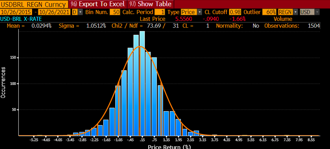 For instance, using forwards when both currencies are major (e.g. GBP, USD, EUR, CAD, AUD, NZD, CHF) are essentially free. Forward points are currently almost zero. If one or both of the currencies are in an emerging market (e.g. BRL, INR, MXN), then the annual cost might reach over 8% annually (Fig. 5).