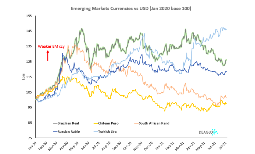 Figure 1. Emerging Markets Currencies vs. the US dollar. Source: Bloomberg