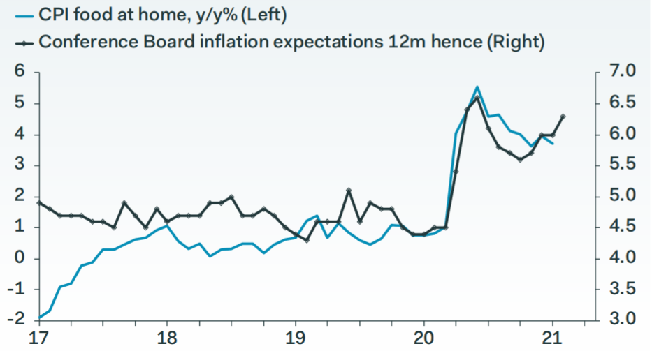 Figure 2. Inflation expectations are sensitive to food inflation. Source: Pantheon Macroeconomics